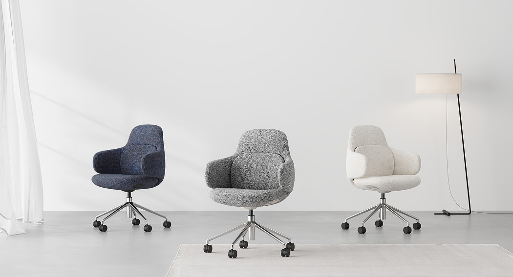 Featuring a clean, minimalist design, this swivel chair offers a soft, supportive form for everyday comfort. The armrests are seamlessly integrated into the backrest, while the swivel mechanism is hidden beneath the seat for a clean, refined look. Ideal for modern offices, and collaborative environments.