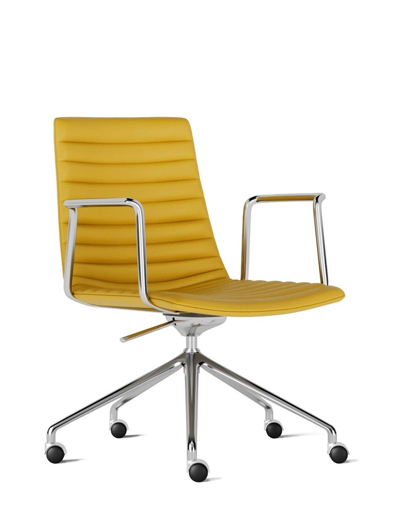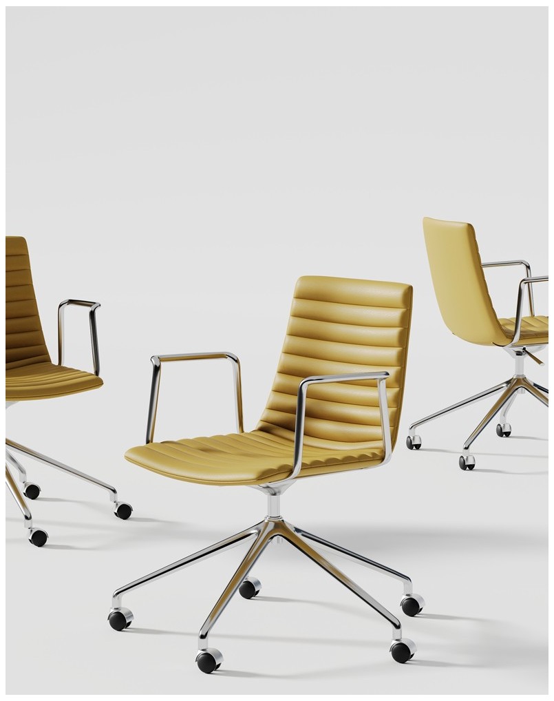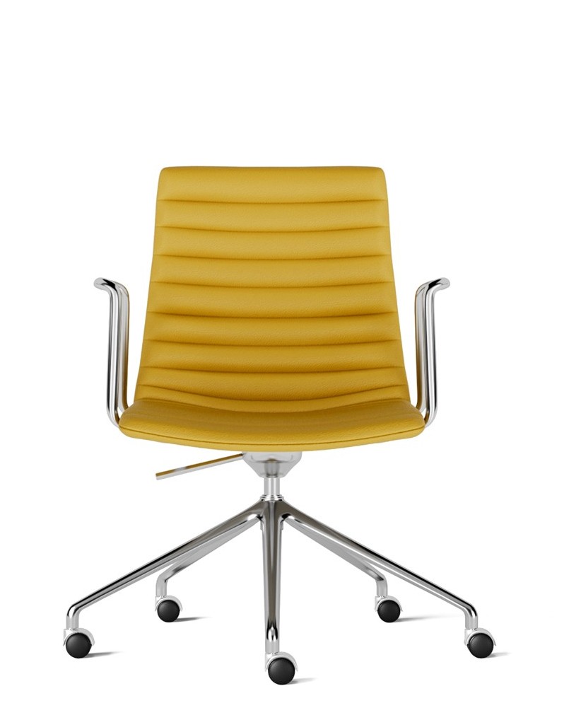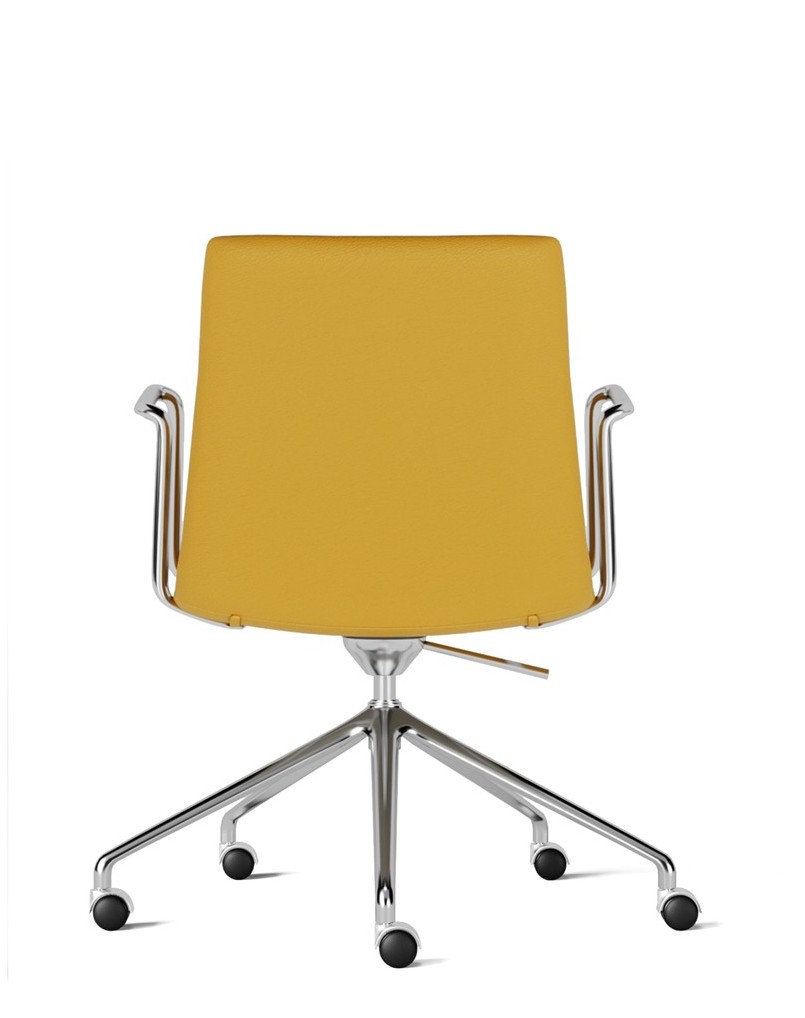 Designer chair made of Top Grade Aniline Italian Leather with a polished aluminum frame. Featuring height adjustable and integrated reclining Donati mechanism. The leather stitching style brings out the luxurious executive look and feel of the chair.