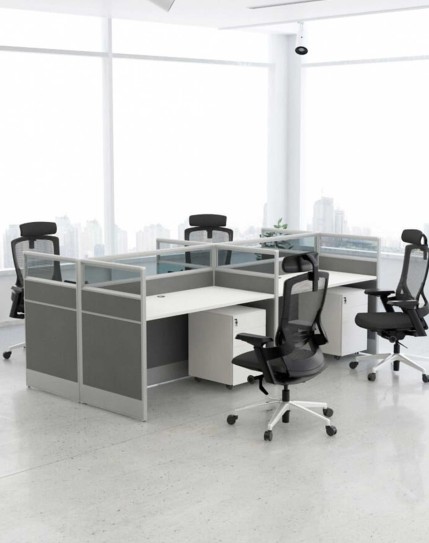 Focus Cluster of 4x Face to Face Cubicle Workstation with Glass Partition