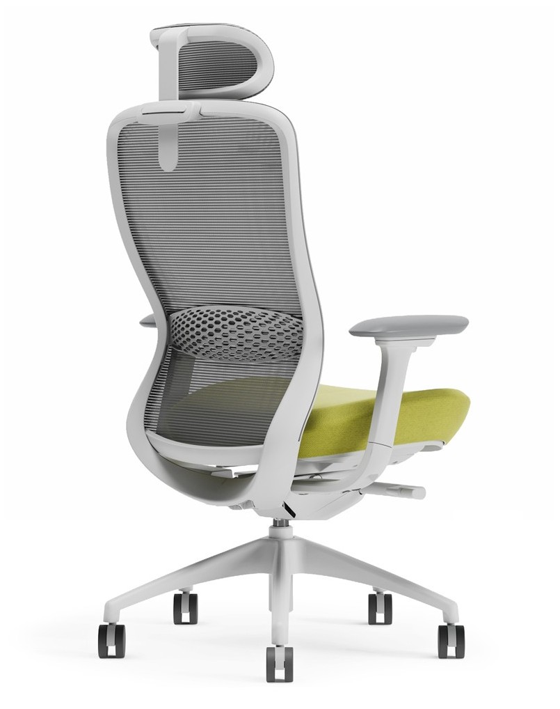 Ergonomic design for ultra comfort with full-function task chair, unique white matt frame, and maya blue fabric seat color. This chair has breathable grey mesh back with high density foam, fabric-covered seat cushion for extra comfort. The chair mechanism includes 4d adjustable arm rest, dual wheel castors, adjustable lumbar support, adjustable sliding...