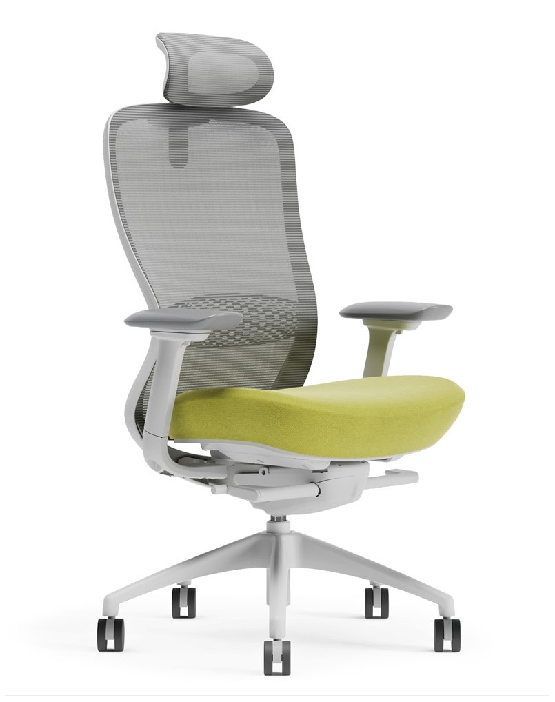 Ergonomic design for ultra comfort with full-function task chair, unique black matt frame, and grey fabric seat color. This chair has breathable grey mesh back with high density foam, fabric-covered seat cushion for extra comfort. The chair mechanism includes 4d adjustable arm rest, dual wheel castors, adjustable lumbar support, adjustable sliding seat...
