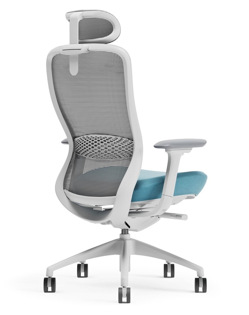Ergonomic design for ultra comfort with full-function task chair, unique white matt frame, and light grey fabric seat color. This chair has breathable grey mesh back with high density foam, fabric-covered seat cushion for extra comfort. The chair mechanism includes 4d adjustable arm rest, dual wheel castors, adjustable lumbar support, adjustable sliding...