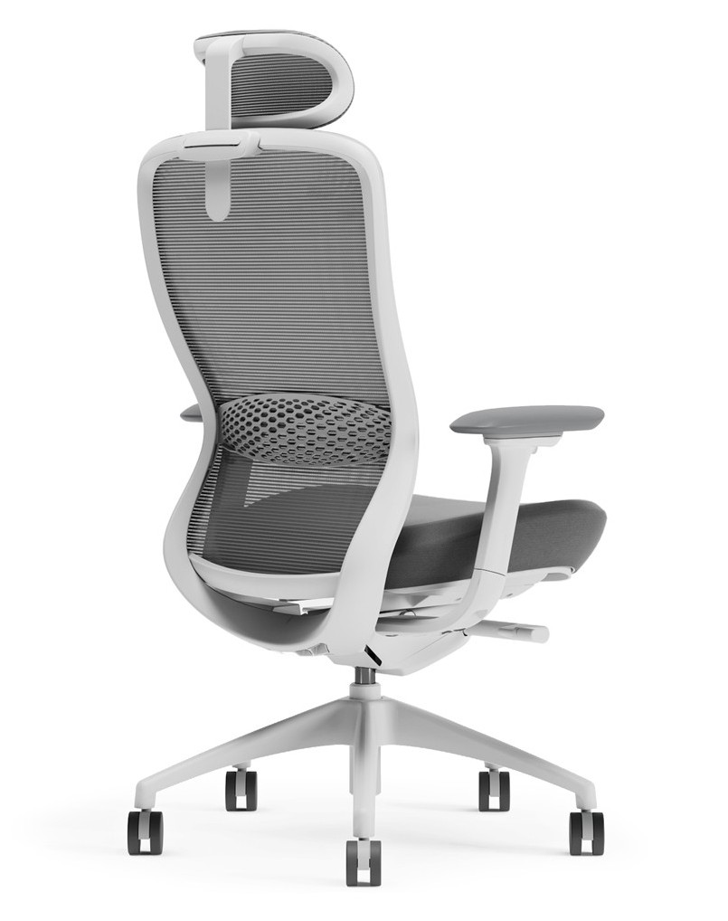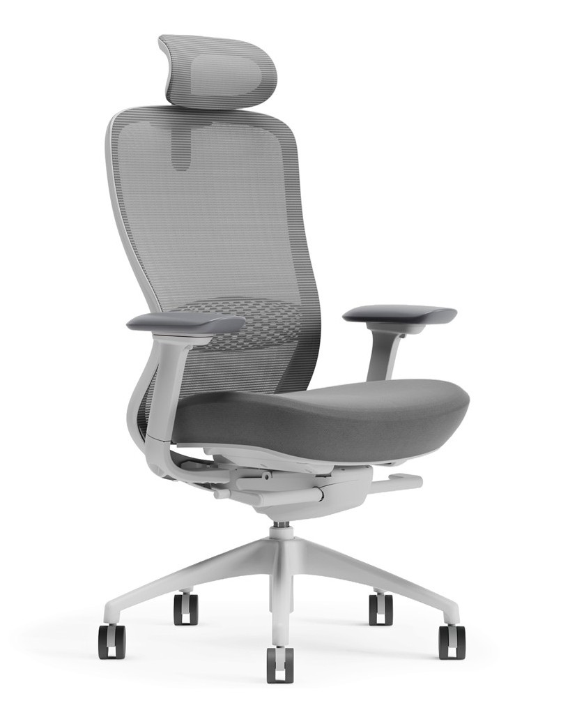 Ergonomic design for ultra comfort with full-function task chair, unique black matt frame, and grey fabric seat color. This chair has breathable grey mesh back with high density foam, fabric-covered seat cushion for extra comfort. The chair mechanism includes 4d adjustable arm rest, dual wheel castors, adjustable lumbar support, adjustable sliding seat...