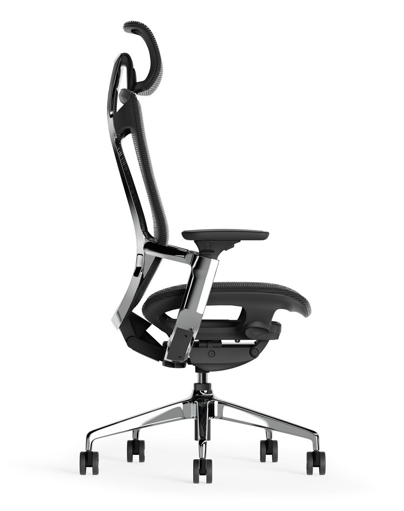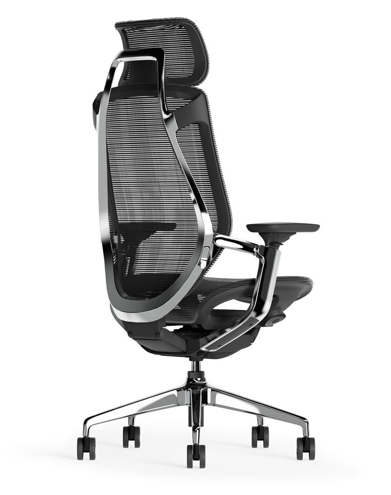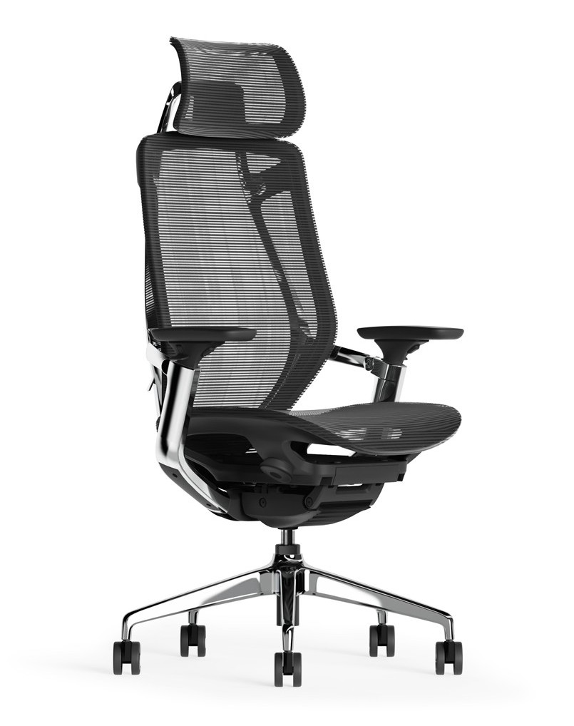 Breathable ergonomic mesh chair with high density seat cushion for comfort. This chair gives you an advanced seating experience through its synchro mechanism with slide plate and tension adjustment. Armrests are padded to support forearms, it also includes adjustable lumbar support and has polished aluminum base.