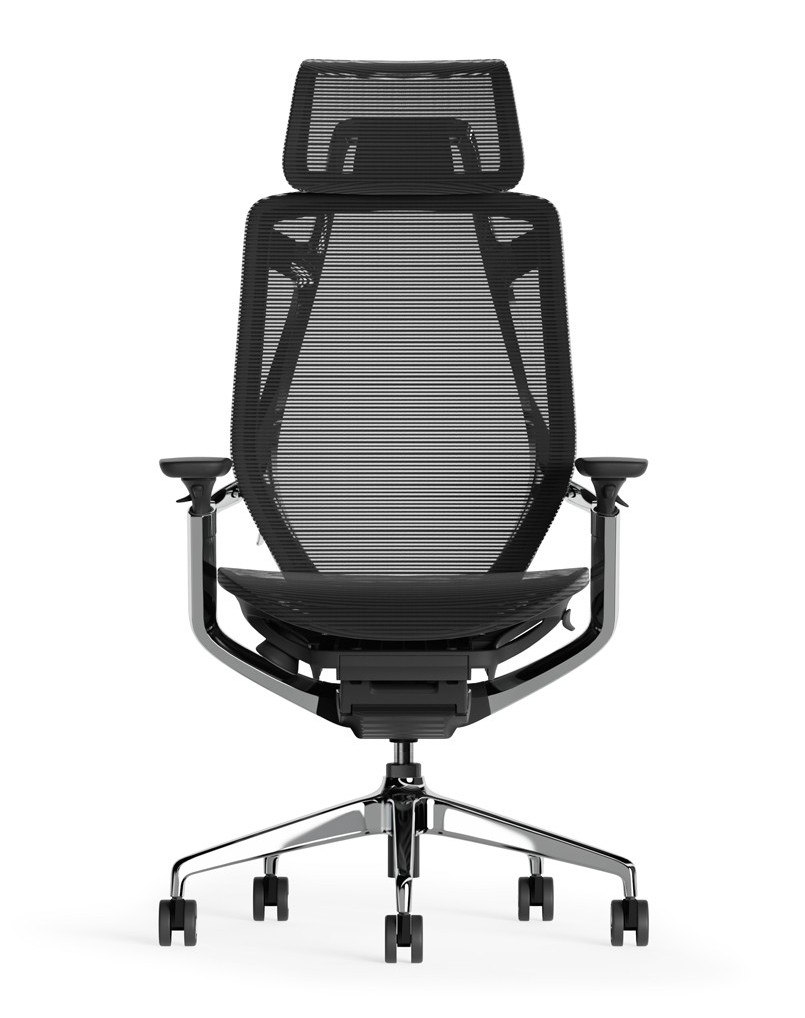 High performance ergonomic chair features a breathable mesh backrest, adjustable headrest, and seat for all-day comfort. It includes adjustable armrests, a multi-functional tilt mechanism, and a sturdy aluminum base with smooth-rolling casters. Ideal for modern offices and long working hours.