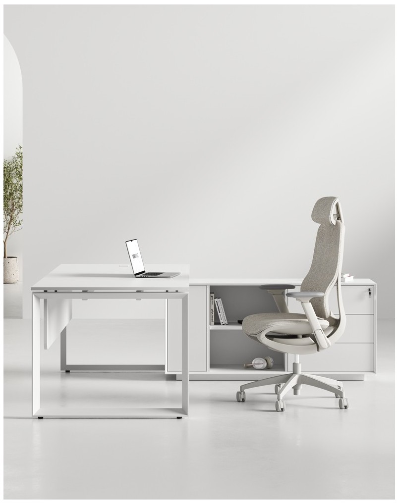 High-performing L-shape desk with ultra-matt tabletop finishes, complemented by the EDGE series detachable side cabinets, with built-in handleless lockable drawers, shelves and CPU. With exceptional scratch and fingerprint resistant tabletop properties and a powder-coated frame, the large selection of colors and add-on elements allows for countless...