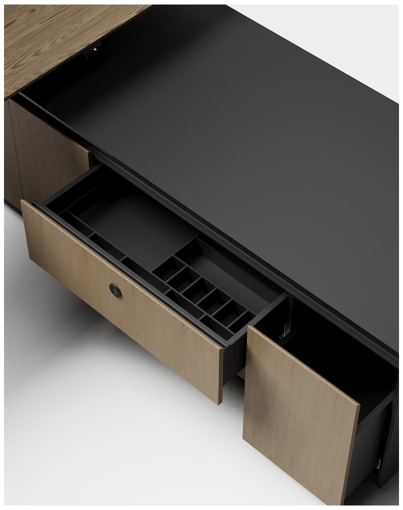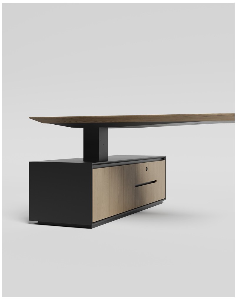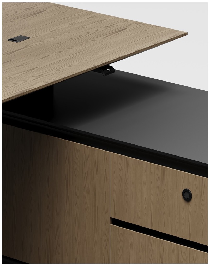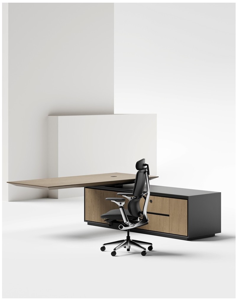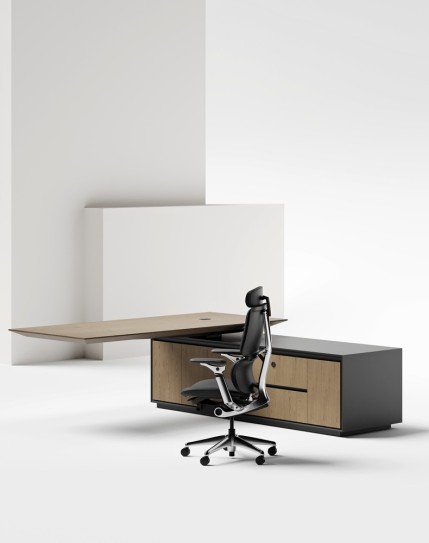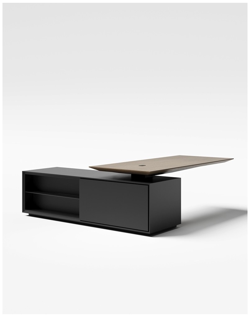 Sleek and modern executive desk. Spacious and practical desk with push-to-open drawers and cabinets. The frame combines elegance and durability making the executive desks looks elegant.