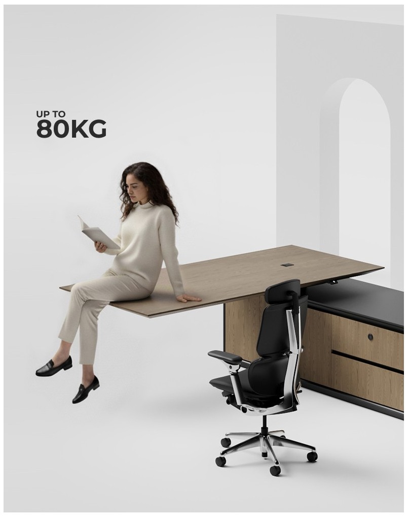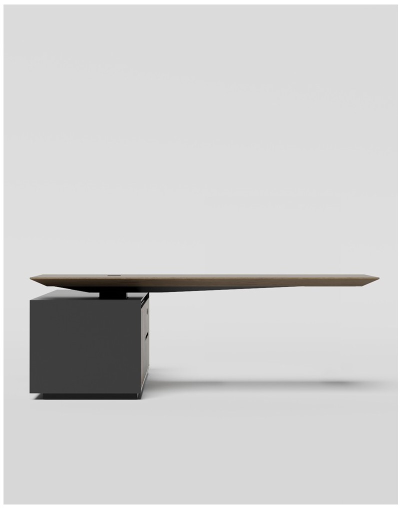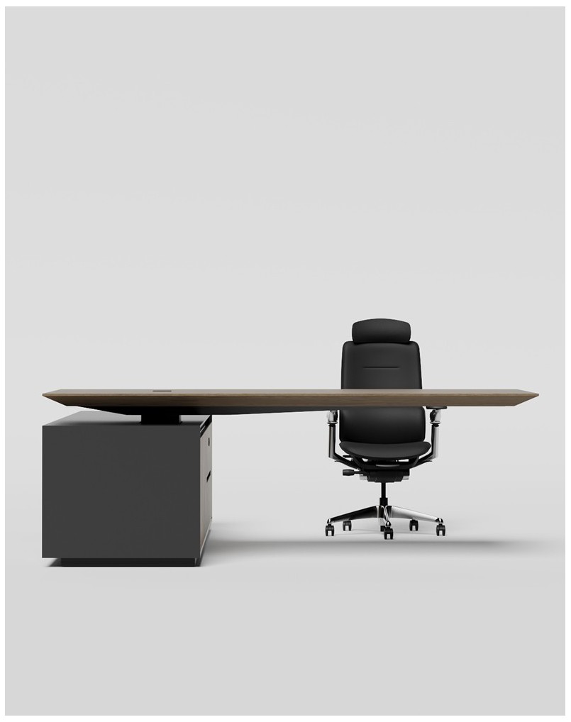 Spacious and practical desk with push-to-open drawers and cabinets. The frame combines elegance and durability making the executive desks looks elegant. Features built-in desklink wire management maintaining the clean lines of the design, and fingerprint drawer locking system for securing personal things.