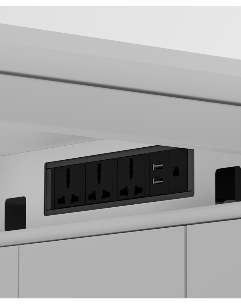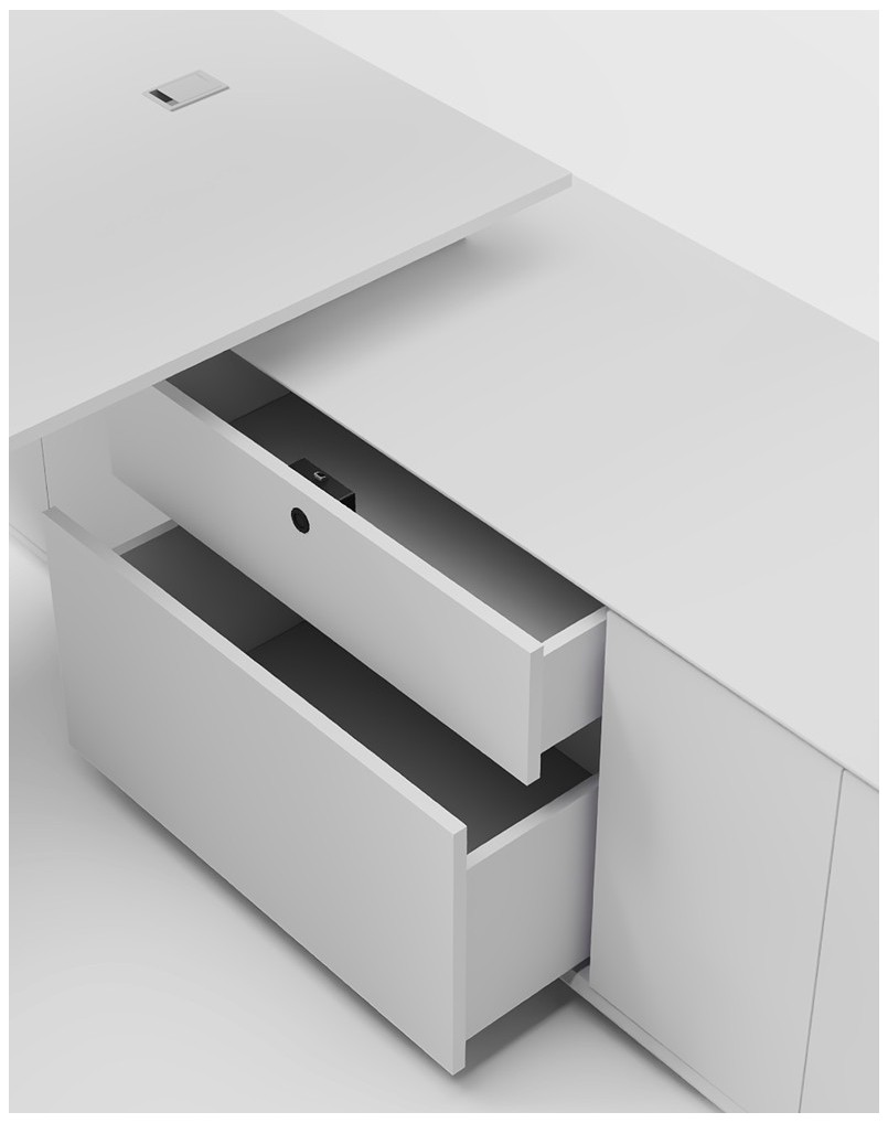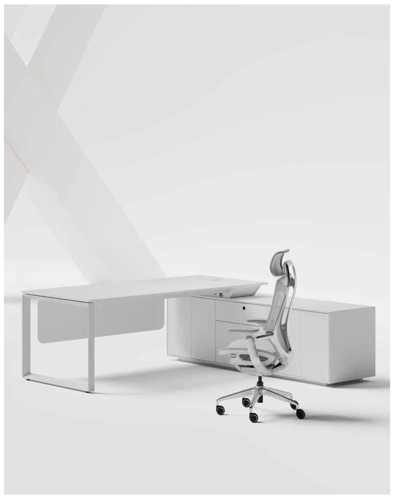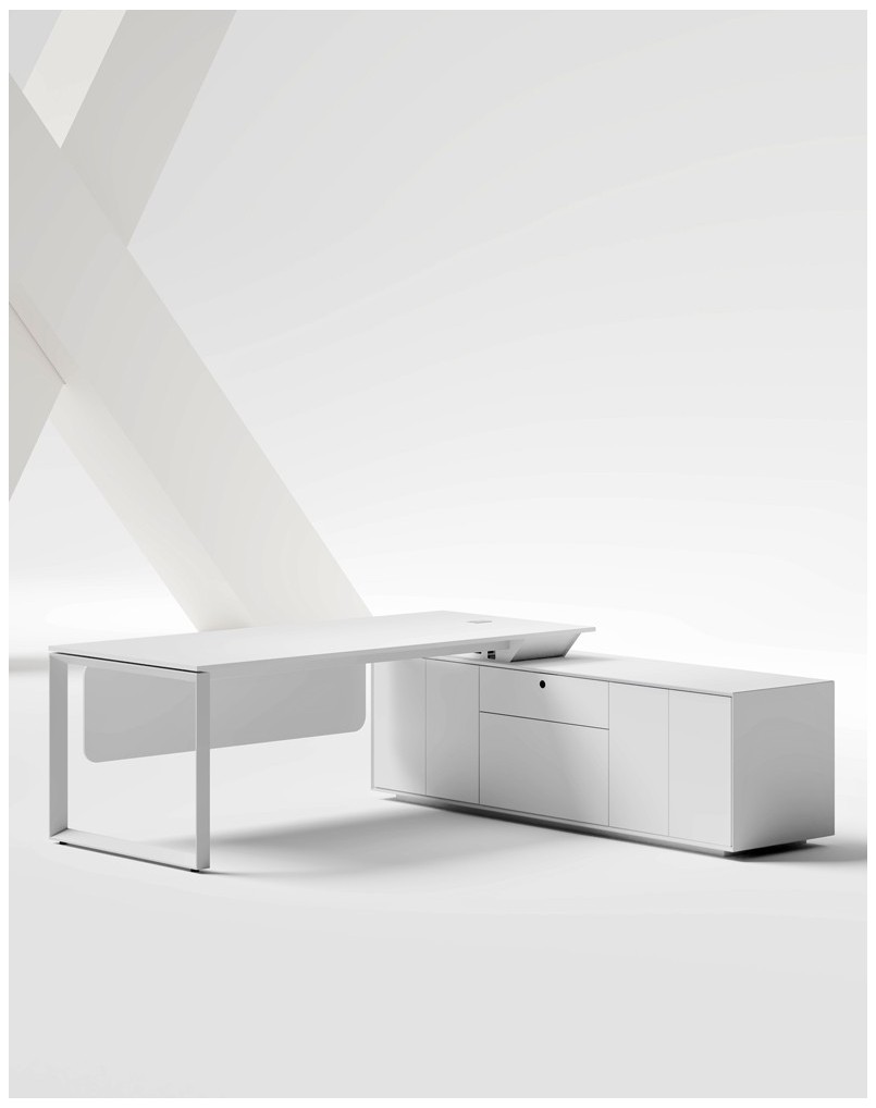 The ARC Designer desk combined by chamfered EDGE™ detachable side cabinet with 3x push open drawers. Stylish minimalist look with functionality, characterized by solid die-cast aluminum legs connected by finely designed joints, the structure of the tables supports tops of different sizes whilst it is characterized by elements whose thickness is reduced...