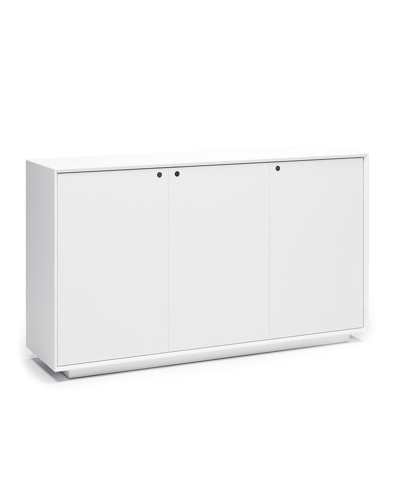 The sleek chamfered edge design is exclusive, intelligent and innovative. Durable commercial grade frame with white finish that resists scratches, stains and wear. Offers three push to open doors with adjustable shelf. Starke® soft close door hinges for smooth and quiet operation.