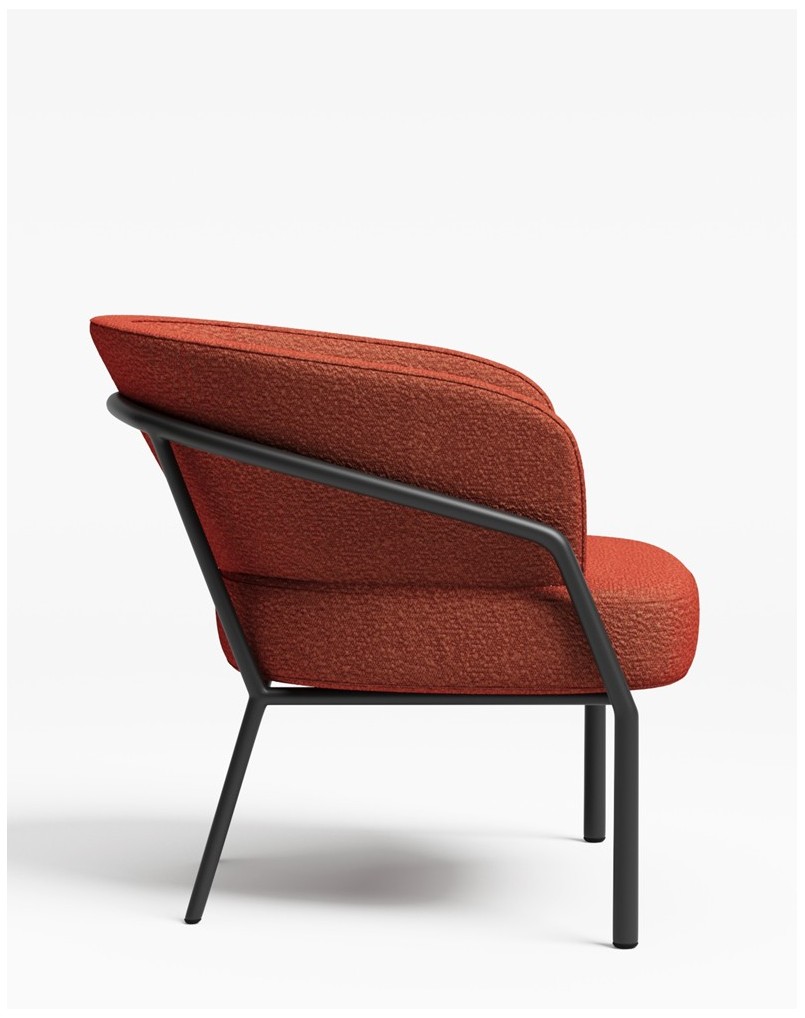 Minimalist rounded design, ideal office seating in lounge area. With soft materials and cushioned seat, this chair provides comfort and relaxed atmosphere in the office. It has black powdered coated base that gives the chair a contemporary character, quite the opposite of its generous padding that invites you to sit back and relax.