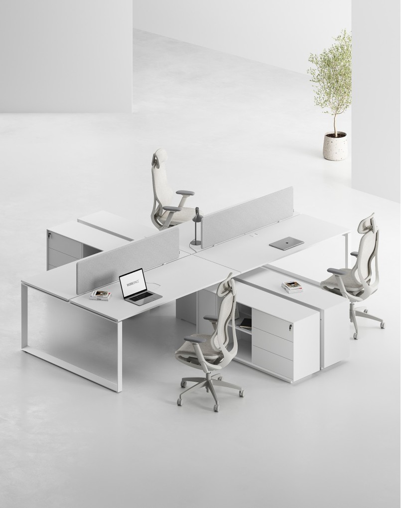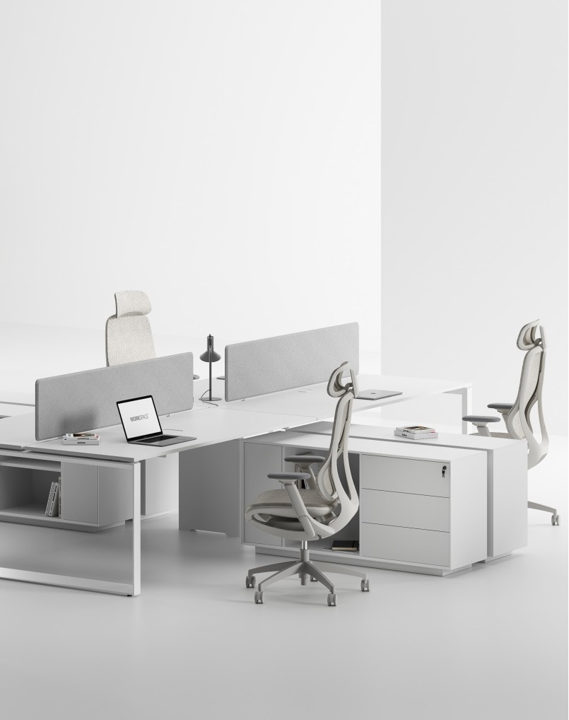 Detachable Side Cabinet with Built-in Handleless Drawers, Shelves for Files and CPU. Modern Minimalist Desk in Powder Coated White or Black Frame.Adjustable L-Return Side